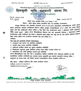 सहकारीका कर्मचारीका लागि आवश्यक छाता र झाेलाका साथै धिताे मुल्याँकन सम्बन्धि प्राविधिक सुचिकृतकाे ७ दिने सुचना